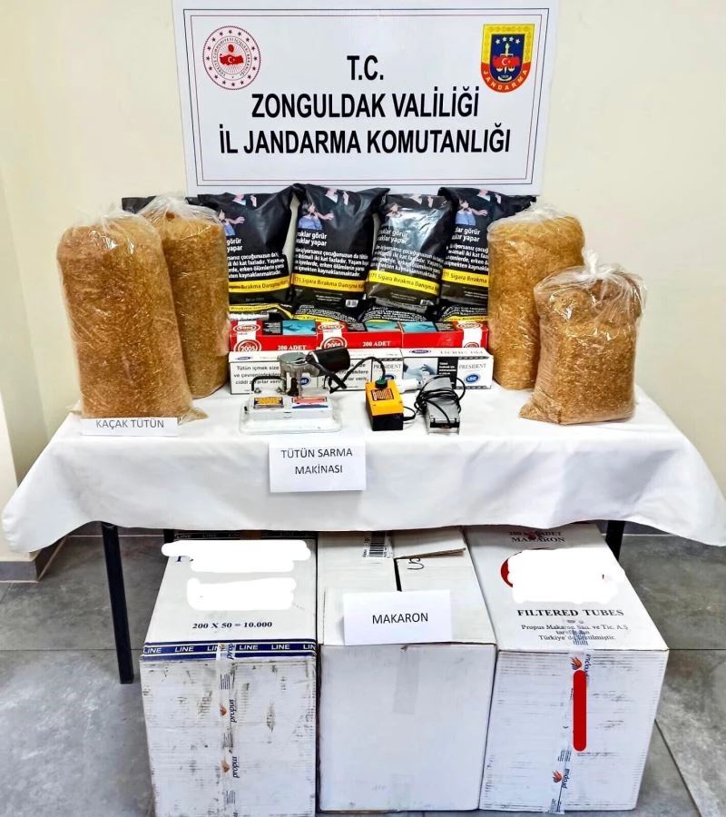 Zonguldak’ta jandarma ekipleri tarafından düzenlenen operasyonda 37 kilogram bandrolsüz tütün ile 20 bin bandrolsüz makaron ele geçirildi.