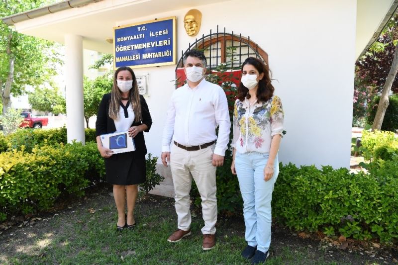 Konyaaltı Belediyesi Çevre Koruma ve Kontrol Müdürü Özgür Bülent Yalçın, yarışmada birinci olan Öğretmenevleri Mahalle Muhtarı Mihriban Kılıç’ı tebrik ederek, belediye adına muhtara tablet hediye etti. Öğretmenevleri Mahalle Muhtarı Kılıç ise kendisine hediye edilen tableti ise Cahit Ünver İlkokulu’nda eğitim gören ihtiyaç sahibi bir öğrenciye vereceğini ifade etti.