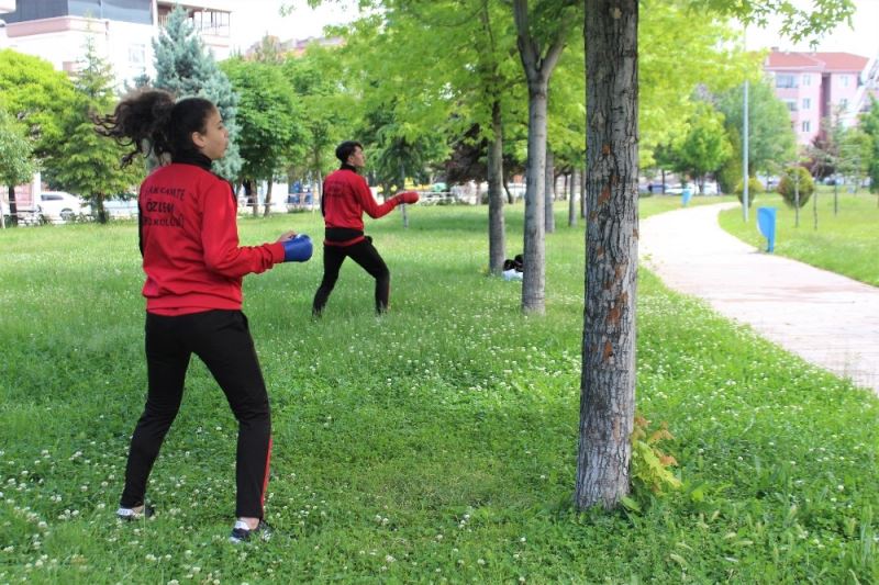Covid-19 ile mücadele kapsamında 4 Nisan’da 20 yaş ve altına sokağa çıkma kısıtlaması getirilmişti. Uşak’ta yaşayan Yunus Çavdar (19) ve Büşra Çetin (15), 4 saatlik izin sürelerini parkta yaptıkları antrenmanlarla dolduruyor. Evdeyken antrenörleriyle ve kulüp arkadaşlarıyla online spor yapan genç sporcular, dışarı çıkma fırsatını ise spor yaparak değerlendiriyor. Karatenin kendileri için oldukça önemli olduğunu dile getiren geç sporcular salgının bir an önce sona ermesini ve tekrar kulüplerinin açılmasını istediklerini belirtti.