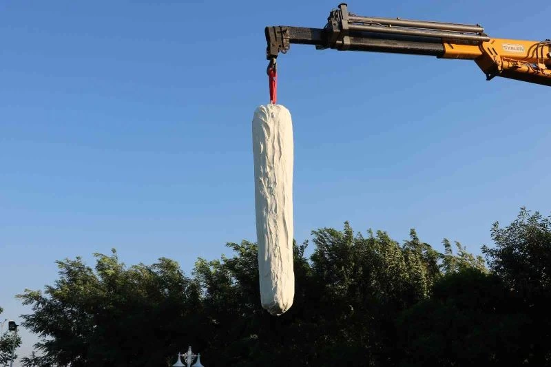 Yaklaşık 4 tonluk dev dondurma, tır yardımıyla Kervanhan Tesislerine getirildi. Tırın içinden onlarca personelin yardımıyla çıkarılan dondurma vince asılarak tesisin bahçesine indirildi. Dondurmayı elektrikli testere ve hızar makinası ile kesmeye çalışan çalışanlar, balta yardımıyla dondurmayı küçük dilimlere ayırdı.