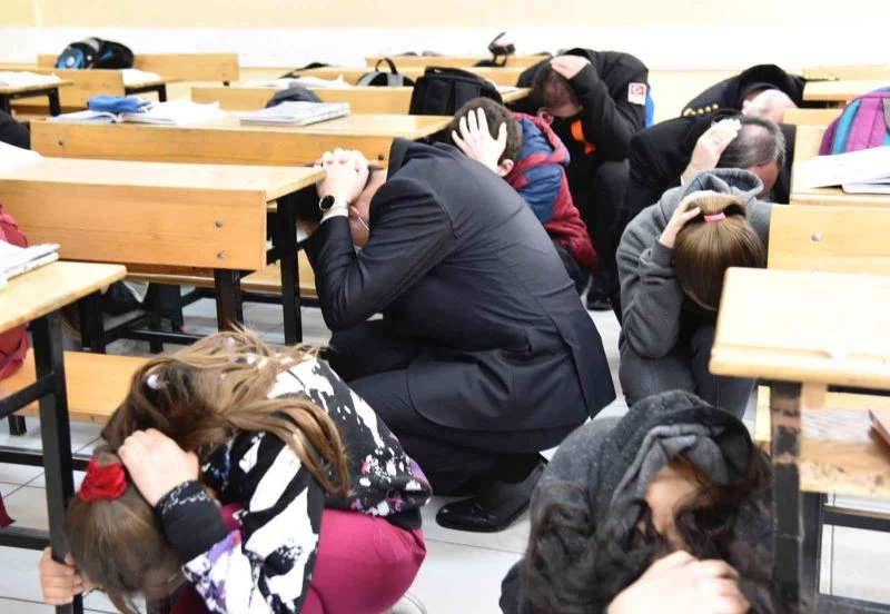 40 bin öğrenci ve öğretmen alarmın çalmasıyla sıranın altında girdi