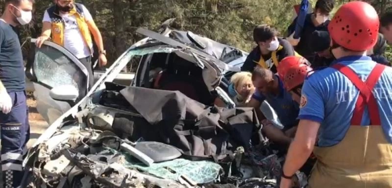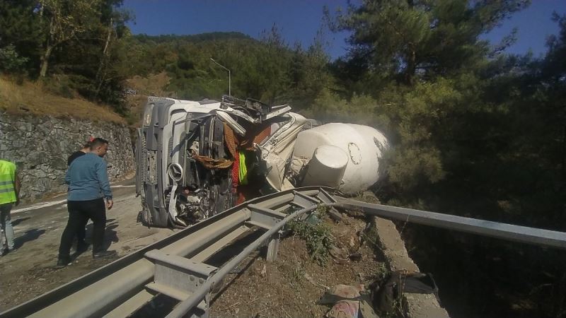Bursa’da 40 tonluk beton mikseri virajı alamayınca karşı şeritten gelen otomobilin üzerine devrildi. Hurdaya dönen araçtan yaralı kadın çıkarılarak hastaneye kaldırıldı.