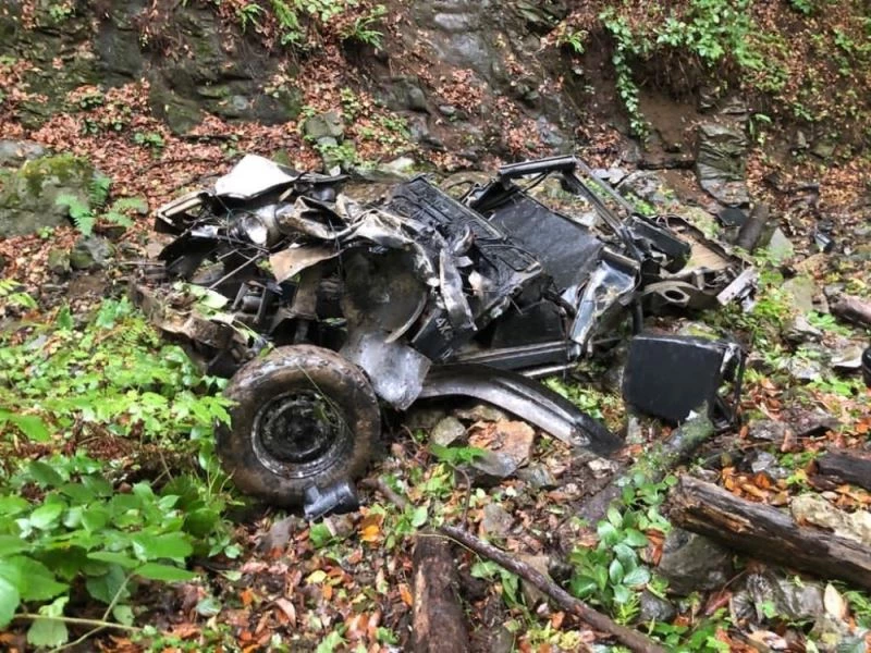 Trabzon’un Akçaabat ilçesindeki Balıklı Yaylası yolunda yaklaşık 400 metre uçuruma yuvarlanarak hurdaya dönen kamyonetin içerisindeki baba ve oğlu yaralandı.