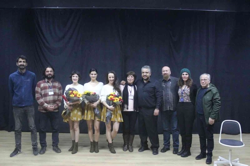 Oyunu Ayvalık Belediye Başkanı Mesut Ergin’in eşi Canan Ergin ile birlikte izleyen belediye meclis üyesi Dilek Saraçoğlu başarılı oyunculara plaket ve çiçek takdim etti.
