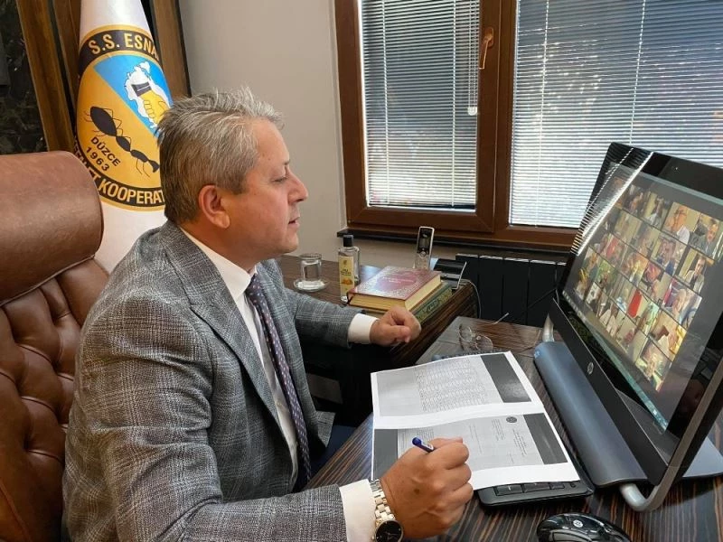 Korona virüs nedeni ile TESKOMB Genel Merkezi’nin toplantısı telekonferans ile gerçekleştirildi. Toplantıya – Düzce Esnaf Sanatkarlar Kredi ve Kefalet Kooperatifi Başkanı ve 5. Bölge Birliği Başkanı Ertan Taşlı’da online olarak katılım sağladı. TESKOMB Genel Başkan Abdülkadir Akgül’ün başkanlığında yönetim kurulu, denetim kurulu ve Bölge Birliği Başkanları toplantısı yapıldı. 5. Bölge Birliğine bağlı kooperatiflerin taleplerini iletme fırsatı bulan Başkan Taşlı, esnafa ve bölge birliğinin sorunlarının çözümü konusunda Genel Başkan’dan destek bekledi.