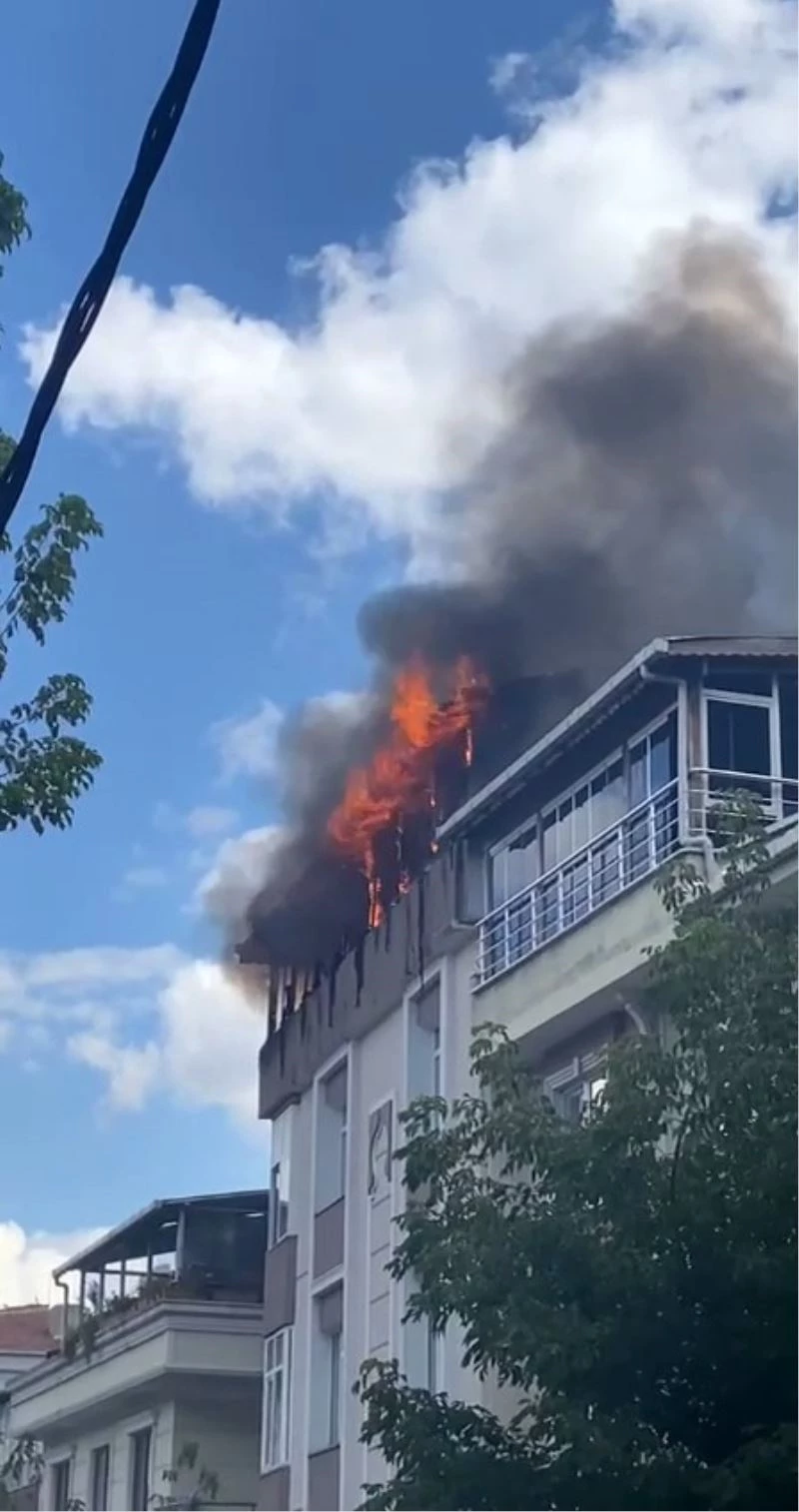 5 katlı binanın çatısı alev alev yandı, ev sahibi gözyaşlarıyla izledi