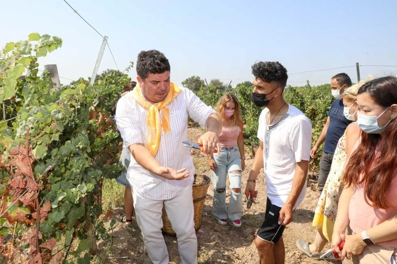 5 ülkeden 21 genç, Başkan Kılıç ile beraber Buca’da üzüm hasat etti