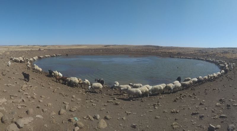 Sabah erken saatlerinde koyunları ahırdan çıkardıklarını ve meraya getirdiklerini ifade eden Ahmet Dağ ise “Hayvanları otlatıyoruz. Aynı zamanda Açık Öğretim Fakültesi okumaktayım. Hayvanlarıma çoban, kendime öğretmenlik yapıyorum. Yaklaşık 50 derece sıcaklığın altında koyunları otlatıyoruz. Tabiki çok sıcak olduğu için fazla dayanamıyoruz. Sıcaktan korunmak için taşlardan gölgelik yapıyoruz. Su ihtiyacımız da çok büyük bir sorun. Evden getirdiğimiz buz dolu şişeler bile 2 saate eriyip sımsıcak bir suya dönüşüyor” dedi.