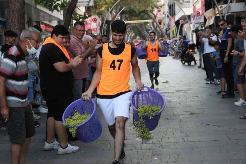 Manisa’nın Alaşehir ilçesinde 4’üncüsü düzenlenen Alaşehir Üzüm Festivali renkli görüntülere sahne oldu. Festivalde yarışmaya katılanlar, “Kelter” adı verilen her biri 25 kilo olan toplam 50 kilogramlık üzüm sepetlerini en hızlı çeken unvanını alabilmek için kıyasıya yarıştı.