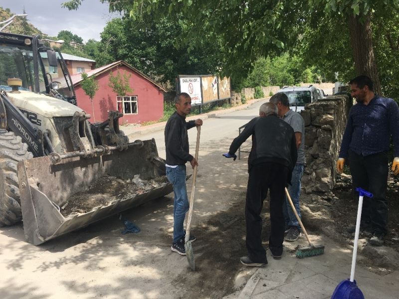 Hakkari’nin Çukurca ilçesindeki tarihi 500 yıllık Emirşaban Camisinin avlusu Cuma namazı için temizlenerek dezenfekte edildi.