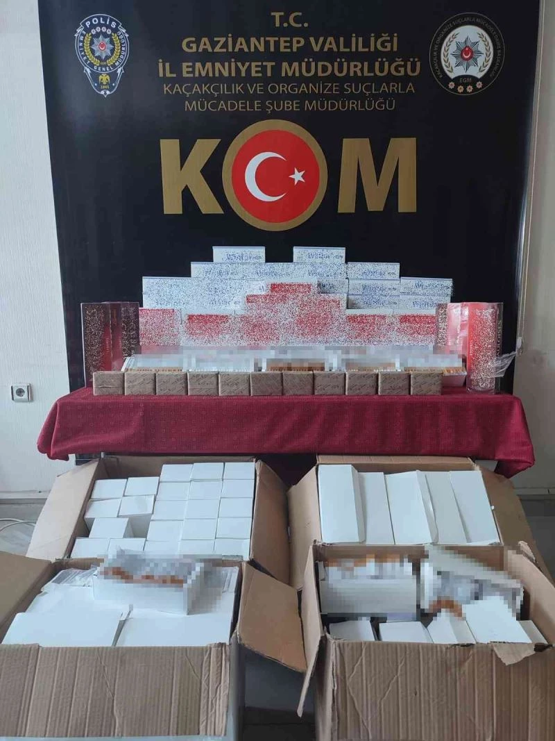 Gaziantep Emniyet Müdürlüğüne bağlı KOM Şube müdürlüğü ekipleri, Şehitkamil ilçesinde bir iş yerinde yaptığı aramalar sonucu; 30 bin 800 adet doldurulmuş makaron, 24 bin 800 adet boş makaron, 2 bin 340 adet sigara kağıdı, 80 paket gümrük kaçağı sigara ele geçirdi. Ekipler olayla ilgili olarak 1 şüpheliyi yakalayarak gözaltına aldı. Şüphelinin yasal işlemeleri devam ederken Gaziantep Emniyet Müdürlüğü, kaçakçılık faaliyetlerini engellemeye yönelik çalışmaların kararlılıkla devam edeceğini vurguladı.