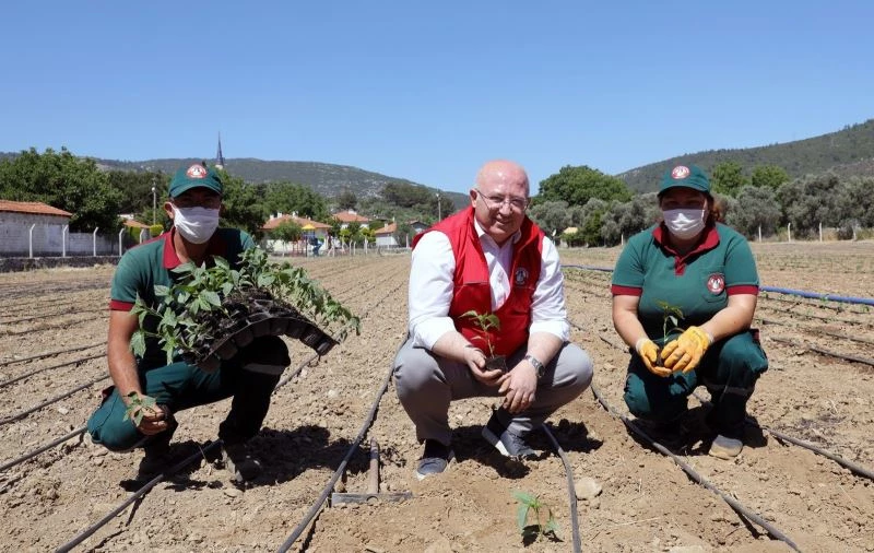 Koronavirüs (Covid-19) salgını tedbirleri kapsamında başlattığı yerli üretim çalışmaları ile ata tohumlarına sahip çıktıklarını ifade eden Menteşe Belediye Başkanı Bahattin Gümüş, işçilerle birlikte ata tohumundan üretilen yerli domates, biber, patlıcan, salatalık, yayla kavunu ve yayla karpuzu fidesinin dikim törenine katıldı.