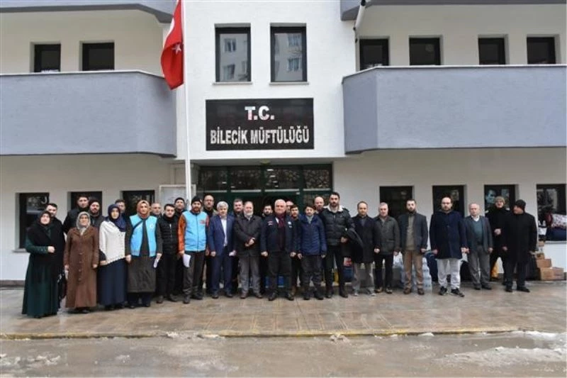 Kahramanmaraş’ta meydana gelen deprem felaketinde zarar gören vatandaşlara yardım etmek üzere Bilecik İl Müftüsü Ali Erhun’un başkanlığında gönüllü personellerden oluşturulan 55 kişilik ekip yola çıktı.