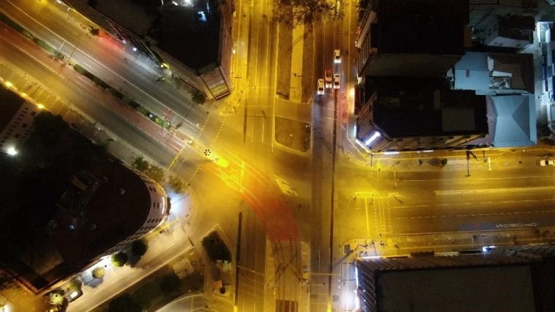 Saat 21.00 itibarı ile başlayan sokağa çıkma kısıtlamasının ardından kentte oluşan sessizlik drone ile havadan görüntülendi.