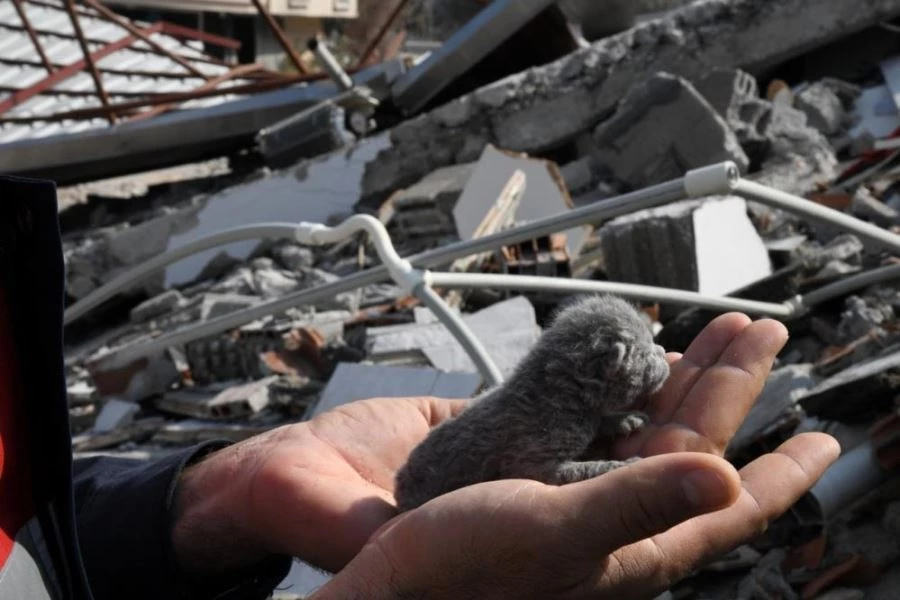 Yavru kedinin sağlık durumunun iyi olduğunu belirten Veteriner Hekim Salih Parlakkılıç, “Osmaniye’de yaşanan depremin ardından yıkılan binaların altından halen canlarımız çıkmaya devam ediyor. Bunlarda bize umut oluyor. Bugün de Osmaniye Belediyesi ekipleri tarafından enkaz altından kurtulan yavru kedi var. Yaklaşık 5 günlük bir yavrumuz. Yapılan ilk kontrollerinde fiziki bir yaralanması yok. Ama üzerinde yoğun şekilde enkaz kalıntıları var. Daha sonra yaptığımız tahliller de ve çektiğimiz röntgenler de herhangi bir sağlık sorununa rastlamadık. Aç kalmıştı, anne sütü destekli özel mama ile yavrumuzun karnını doyurduk” diye konuştu.