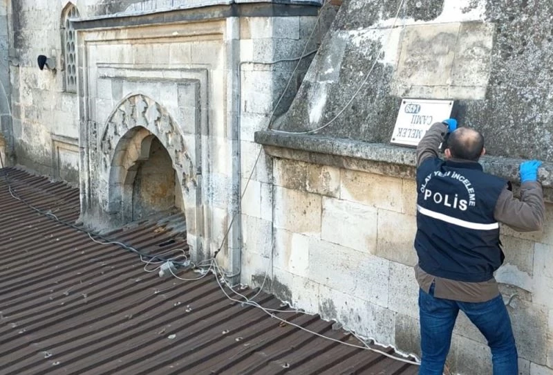 Edirne’de Osmanlı döneminde Rumeli beylerbeyi olan Şah Melek Paşa tarafından 1429 yılında yaptırılan Şahmelek Camisi’ne zarar veren kişi ardından caminin dış cephesine kasketini asıp kayıplara karıştı.