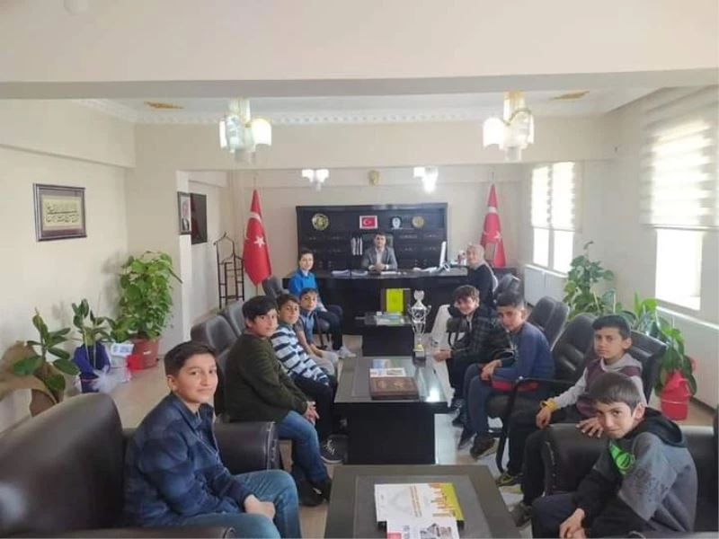 BİTLİS – Bitlis il genelinde düzenlenen müsabakalarda 6 dalda 6 kupa alan Güroymak Ortaokul öğrencileri, Kaymakam ve Belediye Başkan Vekili Ramazan Cankaloğlu’nu ziyaret ettiler.