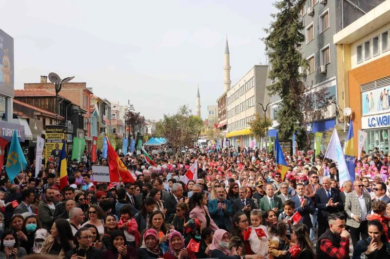 Türkiye’den gelen ekiplerin yanı sıra Bulgaristan, Moldova, Bosna-Hersek, Kırgızistan, Gürcistan ve Romanya’dan gelen halk oyunları ekipleri gösterilerini sahneledi. Uluslararası Edirne 23 Nisan Çocuk Bilim Festivali, dün düzenlenen açılış programı ile başladı. Saat 16.00’da Selimiye Camii meydanında toplanan kortej Saraçlar Caddesi’ne kadar bando eşliğinde yürüdü. Saraçlar Caddesi’nde açılış konuşmalarının ardından ulusal ve uluslararası halk oyunları gösterileri sahnelendi. Sahne gösterilerinde Türkiye’den gelen ekiplerin yanı sıra Bulgaristan, Moldova, Bosna-Hersek, Kırgızistan, Gürcistan, Romanya’nın halk oyunları sahne aldı.