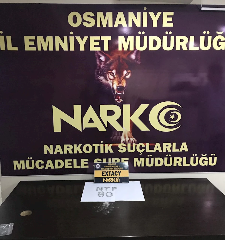 OSMANİYE`de polisin bir ikamette yaptığı aramada 60 adet extacy hap maddesi ele geçirildi. İl Emniyet Müdürlüğü Narkotik Suçlarla Mücadele Şubesi ekipleri, `155 Polis İmdat` hattına gelen bir ihbar üzerine harekete geçti. Uyuşturucuyla mücadele çalışmaları kapsamında, belirtilen adreste arama yapan ekipler, 60 adet extacy hap maddesi ele geçirdi. Gözaltına alınan ev sahibi hakkında "Uyuşturucu veya uyarıcı madde imal ve ticareti" suçundan adli işlem başlatıldı.