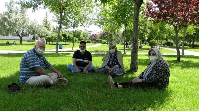 Bazı yaşlılar sıcak havaya aldırış etmeden yürüyüş yaparken kimileri de karşılaştıkları arkadaşlarıyla sosyal mesafe kurallarını gözeterek sohbet etti.