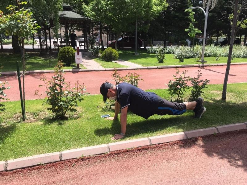 Kısıtlamanın 12.00-18.00 saatleri arasına alındığından haberinin olmadığını ve 1 saattir koşu yaptığını ifade eden Hacı Ömer Erkan (69), koşunun ardından şınav çekip gençlere meydan okuyarak, “Hodri meydan” ifadelerini kullandı.
