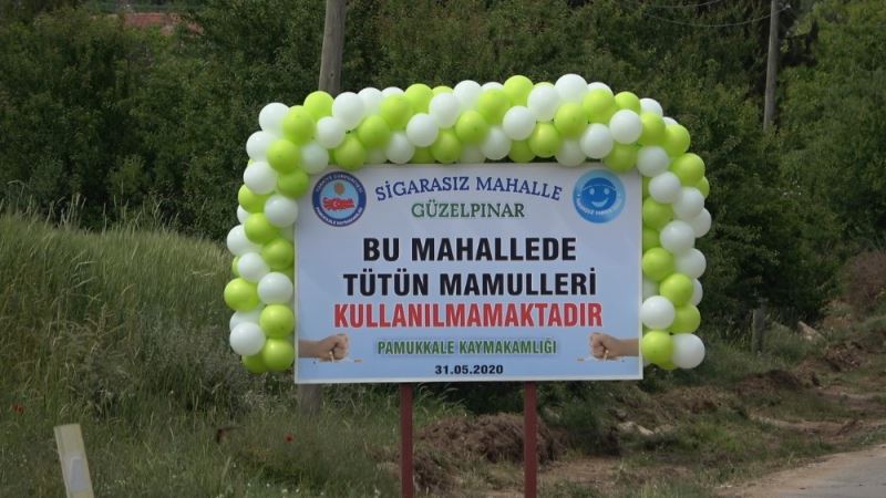 Denizli’nin Pamukkale ilçesi Güzelpınar Mahallesi’nde yaklaşık 7 ay önce başlatılan ‘Sigarasız Mahalle’ projesinde bugüne kadar 72 tiryaki sigarayı bıraktı. Nüfusu 540 olan mahallede hedef ise 48 tiryakiye daha sigarayı bıraktırmak. Yarın kutlanacak olan 31 Mayıs Dünya Tütüne Hayır Günü öncesi mahallenin girişine ise ‘Sigarasız Mahalle’ tabelası dikildi.
