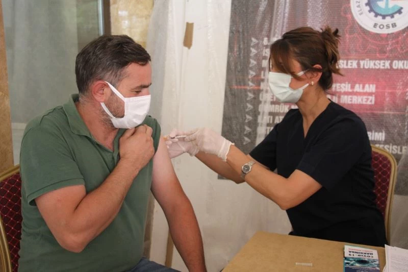 7 bin 500 kişinin istihdam edildiği Elazığ Organize Sanayi Bölgesinde mobil ekipler tarafından çalışanların aşılanmasına başlandı.