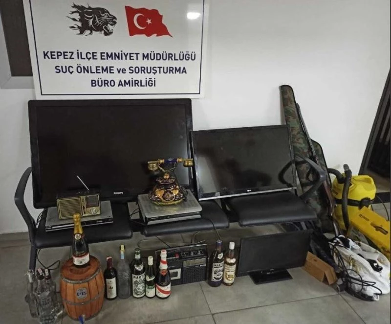 Antalya Cumhuriyet Başsavcılığı koordinesinde, Kepez İlçe Emniyet Müdürlüğü görevlilerince yapılan çalışmalarda; Kepez ilçesi Erenköy, Göçerler, Kanal ve Duacı mahallelerinde gerçekleşen 7 farklı evden hırsızlık olayını gerçekleştirdikleri anlaşılan H.Ç. ve S.E. isimli şahıslar 24 Nisan günü yakalandı. Şüphelilerin çalmış olduğu malzemeler temin edilerek yapılan işlemlerin ardından müştekilere teslim edildi. Antalya Cumhuriyet Başsavcılığına sevk edilen şüphelilerden S.E., çıkarıldığı Sulh Ceza Hakimliğince Adli Kontrol kararıyla serbest bırakılırken, H.Ç. isimli şahıs tutuklanarak cezaevine gönderildi.