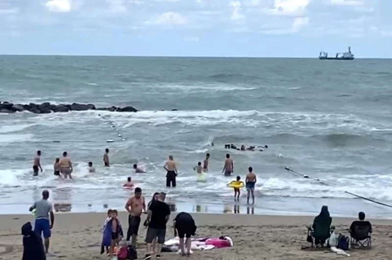 Sakarya’nın Karasu ilçesinde etkili rüzgar ve dalgaya rağmen denize giren 7 kişilik yabancı uyruklu aile, kıyıya yakın bir mesafede akıntıya kapıldı. Kıyıya dönemeyen ailenin seslerini duyan cankurtaran ekipleri, denize girerek saniyeler içerisinde aileyi ölümün kıyısından aldı.