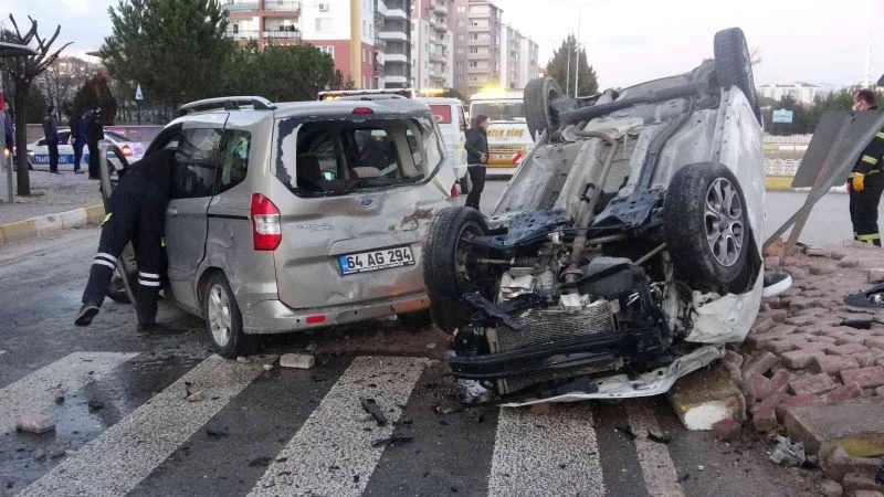 Uşak’ta akşam saatlerinde 2 araç yol kesişiminde çarpıştı. Çarpışma etkisiyle bir araç takla atarak ters döndü. Meydana gelen kazada çeşitli yerlerinden yaralanan araçlardaki 7 kişi çevre hastanelere kaldırılırken kaza anı ise bir apartmanın güvenlik kameralarına yansıdı.