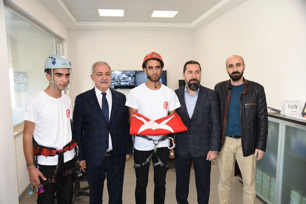 Bayrak teslim töreninde ODAK Üyesi Yücel Erdoğan ve genç dağcılar da yer aldı.