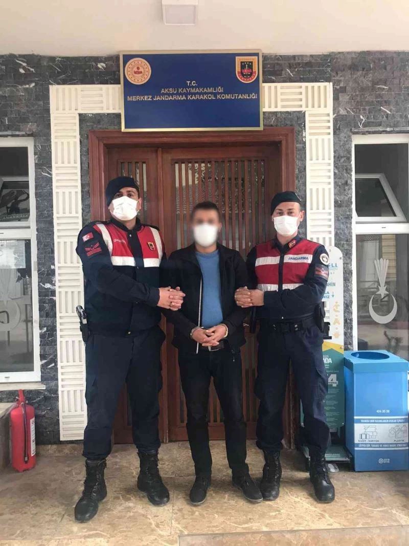Antalya İl Jandarma Komutanlığına bağlı Aksu İlçe Jandarma Komutanlığı ekipleri tarafından Aksu ilçesi Gökdere Mahallesi’nde nitelikli suçlardan aranan şahısların yakalanmasına yönelik yürütülen planlı faaliyetler kapsamında hakkında basit yaralama, bir adet ateşli silah ve mutat sayıdaki mermileri bulundurma, silahla tehdit, kullanmak için uyuşturucu veya uyarıcı madde satın almak, kabul etmek, bulundurmak ve kullanmak, kasten yaralama, ?2313 Sayılı Uyuşturucu Maddelerinin Murakabesi Hakkında Kanun, alkol veya uyuşturucu madde etkisi altındayken araç kullanmak, dikili ağaç veya bağ çubuğuna zarar verme, kamu malına zarar verme olmak üzere 9 farklı suç kaydı bulunan ve basit yaralama ile silahla tehdit suçlarından 7 yıl 15 gün kesinleşmiş hapis cezası olan Ü.K., 23 Mart Çarşamba günü düzenlenen operasyonla yakalandı.