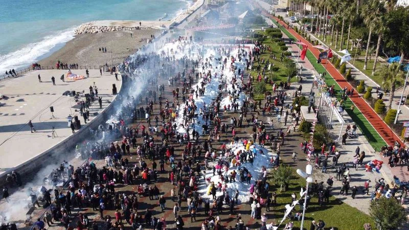 Mersin Erdemli’de belediye ekipleri tarafından sahil kenarına getirilen 70 kamyon kar ile festival düzenlendi çocuklar doyasıya eğlendi.