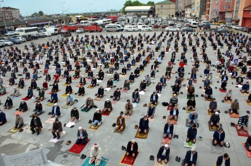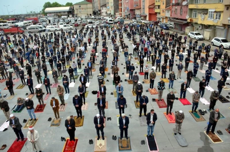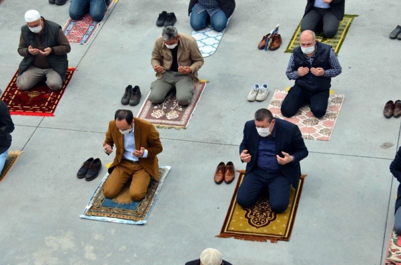 Koronavirüsle mücadele önlemleri nedeniyle yaklaşık 2,5 aydır cuma namazlarının cemaatle kılınmadığı Alaplı’da ilk Cuma namazı Alaplı Çağlayan Cami önündeki Otopark alanında kılındı.