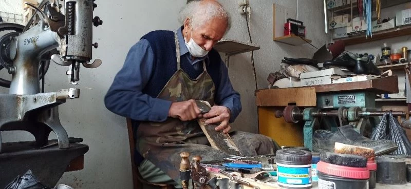 İzmir’in Ödemiş ilçesine bağlı Kaymakçı Mahallesi’nde yaşayan 74 yaşındaki Hüsnü Kabar, geçimini 60 yıldır ayakkabı tamiri yaparak sağlıyor.