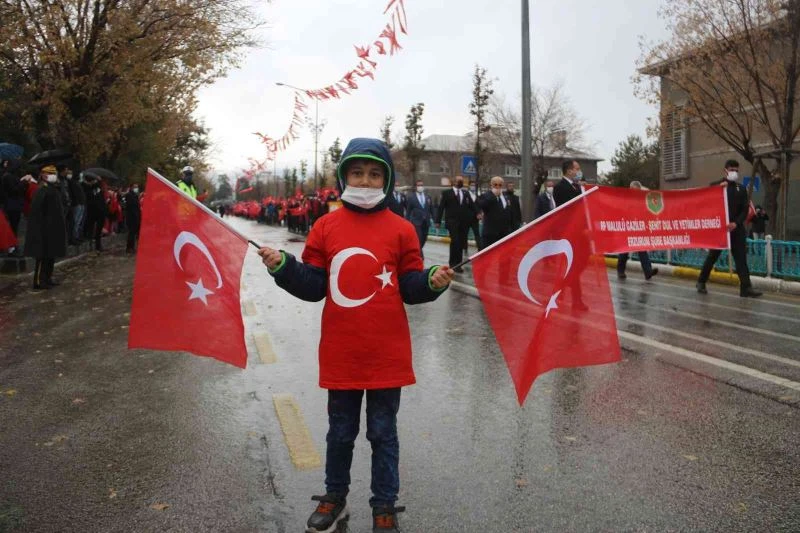 Erzurum’da Cumhuriyetin Kuruluşunun 98. yılı düzenlenen törenle kutlandı. Kutlamalar sırasında başlayan yağmur ise kutlamalara engel olmadı. Şemsiyelerini ve yağmurluklarını alan 7’den 70’e yüzlerce Erzurumlu, tören alanına koştu.