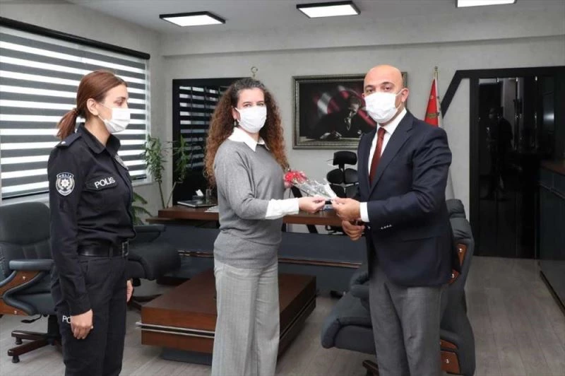 İl Emniyet Müdürlüğünden yapılan açıklamaya göre, kadın polis memurlarının Dünya Kadınlar Günü'nü tebrik edip çiçek verdi.
