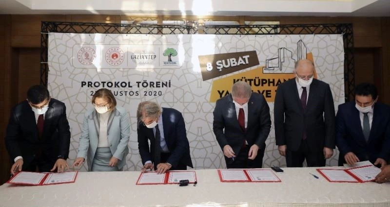 Yapımı Şehitkamil Belediyesi tarafından gerçekleştirilecek 8 Şubat Kütüphanesi binasına ilişkin hazırlanan protokol, Kültür ve Turizm Bakan Yardımcısı Ahmet Misbah Demircan, Gaziantep Valisi Davut Gül, Şehitkamil Belediye Başkanı Rıdvan Fadıloğlu ile Gaziantep Çevre ve Şehircilik İl Müdürü Hasan Alan tarafından imzalandı.