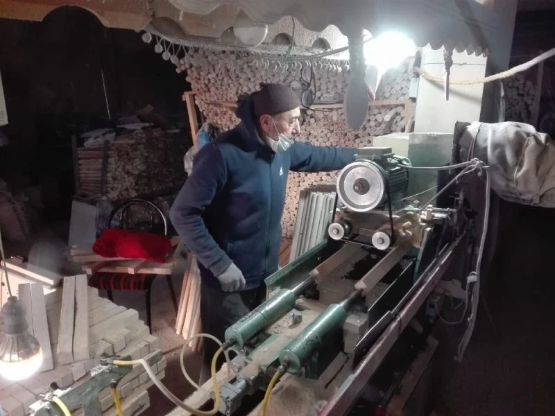 Ordu’nun Kumru ilçesinde 85 yaşındaki, ilerleyen yaşına rağmen inşaat ustalarının ve çiftçilerin kullandığı keser-balta gibi malzemelerin saplarını üretiyor.