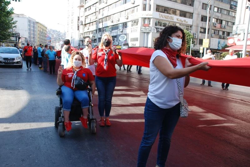 İzmir’in kurtuluşunun 99. yıldönümü etkinlikleri, 350 metrelik dev Türk bayrağının binlerce İzmirli tarafından taşınmasıyla yapılan geleneksel Zafer Yürüyüşü ile başladı. Ardından Cumhuriyet Meydanı’nda Atatürk anıtına protokol üyeleri tarafından çelenk sunumunda bulunuldu.