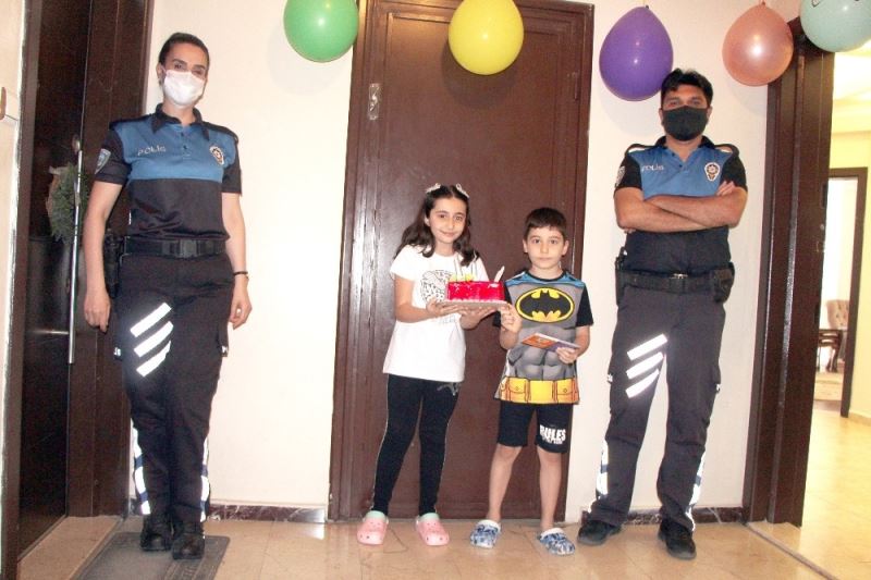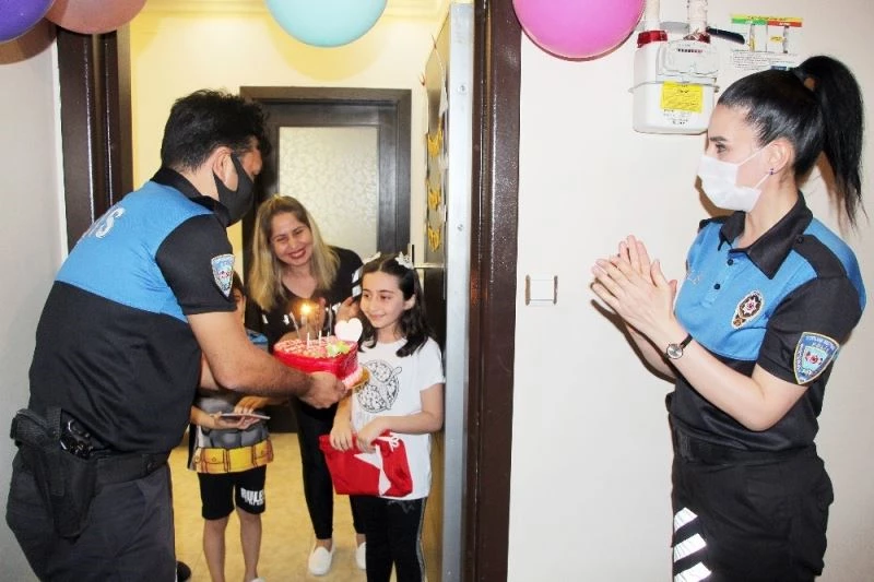 Hatay’da polis ekipleri, sokağa çıkma kısıtlaması nedeniyle dışarı çıkamayan 9 yaşındaki Elif İkra’ya pasta götürerek doğum gününü kutladı.