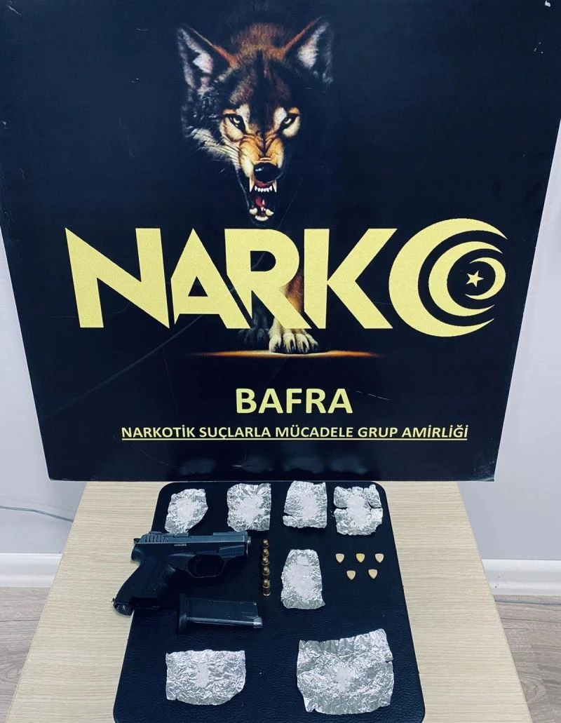 Samsun’un Bafra ilçesinde 4 ayrı suçtan 9 yıl 4 ay hapis cezası bulunan şahıs polis ekiplerince yakalandı. Yakalan şahsın aracında uyuşturucu ve silah ele geçirildi.