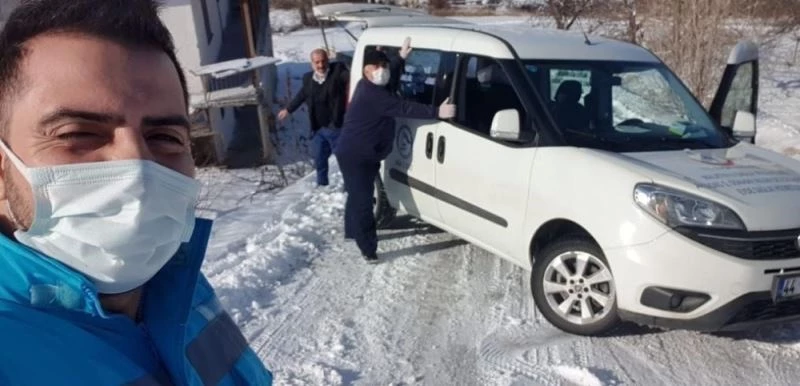 Malatya’da olumsuz kış koşullarına rağmen ekipler, 90 yaş üzerindeki vatandaşların evlerine giderek, aşıyı yapıyor.