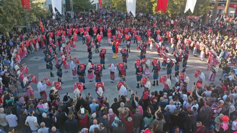 Konuşmaların ardından protokol üyeleri ve meydanı dolduran Denizlililer büyük coşku içinde, “Ölürüm Türkiyem” ve “Onuncu Yıl Marşı”na Türk bayrakları sallayarak eşlik etti.