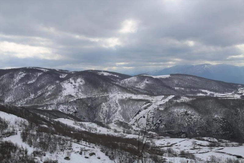 Beyaz örtüyle kaplanan dağlarda güzel görüntüler oluştu.