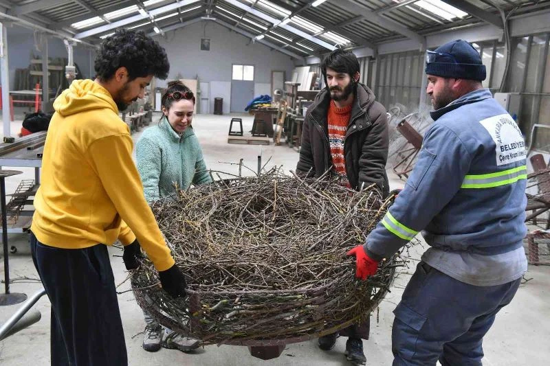 Baharın müjdecisi olarak bilinen leyleklerin göç güzergahı üzerinde bulunan alanlara özel yaşam alanları oluşturmak için harekete geçen Çevre Koruma ve Kontrol Daire Başkanlığı, atıl halde bulunan demirlere yuvarlak form vererek yuva haline getirdi.