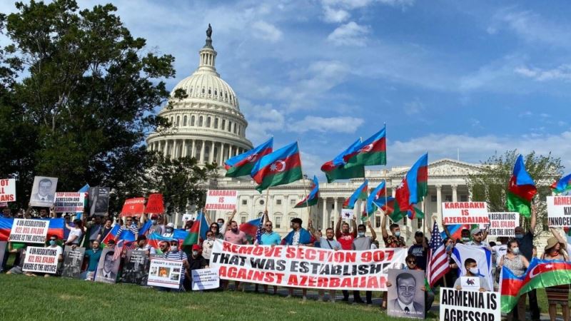 ABD Kongre Binası önünde toplanan Azerbaycanlılar, Ermenistan’ı protesto etti.