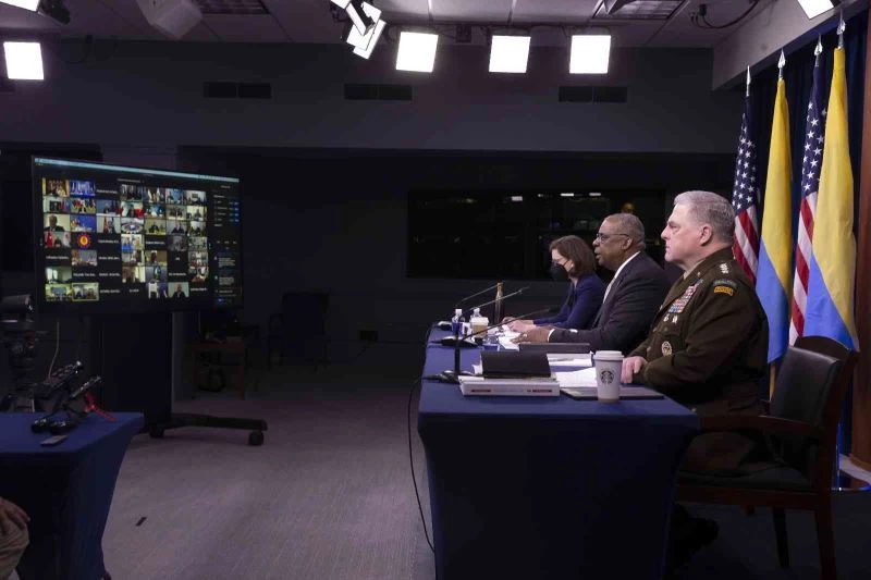 Ukrayna Savunma Temas Grubu’nun ikinci toplantısı çevrimiçi olarak yapıldı. Toplantının ardından ABD Savunma Bakanı LIoyd Austin ve ABD Genelkurmay Başkanı Orgeneral Mark Milley ortak basın toplantısı düzenledi. Austin yaptığı açıklamada, Danimarka’nın Ukrayna’nın kıyılarını savunmasına yardımcı olacak Harpoon füzeleri sağlamayı kabul ettiğini belirterek, Çekya’nın ise Ukrayna’ya "son zamanlarda yapılan saldırı helikopterleri, tanklar ve roket sistemleri bağışı" dahil olmak üzere "önemli destek" göndermeyi kabul ettiğini ifade etti. Toplantıda 20 ülkenin Ukrayna’ya yeni silah yardımında bulunacağını açıkladığını aktaran Austin, söz konusu güvenlik yardım paketlerinin içinde topçu mühimmatı, kıyı savunma sistemleri, tanklar ve diğer zırhlı araçlar bulunduğunu açıkladı. Austin, diğer ülkelerin ise Ukrayna güçlerini eğitmek ve askeri sistemlerini sürdürmek için yeni taahhütlerle öne çıktığını aktardı.