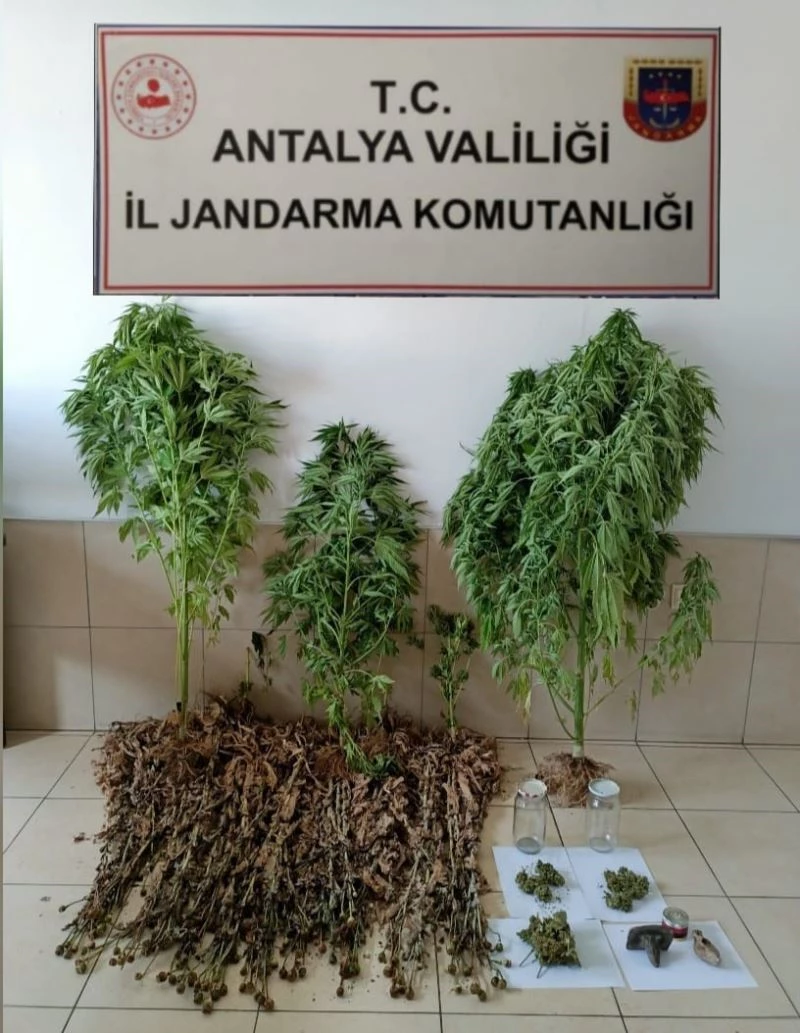 Antalya’nın Demre ilçesinde İlçe Jandarma Komutanlığı ekipleri tarafından uyuşturucu ile mücadele kapsamında yürütülen çalışmalarda, Yavu Mahallesi’nde ikamet eden Amerika Birleşik Devletleri (ABD) uyruklu B.M.C.’nin evinde ve evin eklentilerinde arama yapıldı. Yapılan aramada 6 kök Hint keneviri, 48 kök kapsülleri çizilmiş haşhaş bitkisi, 18 kök sökülmüş vaziyette haşhaş bitkisi, 60 gram kubar esrar, 1 adet kenevir öğütme aparatı, tarihi eser niteliği taşıdığı değerlendirilen 1 adet kandil ve 1 adet kurt başlı obje ele geçirildi. Şüpheli, cumhuriyet savcısının talimatıyla gözaltına alındı.