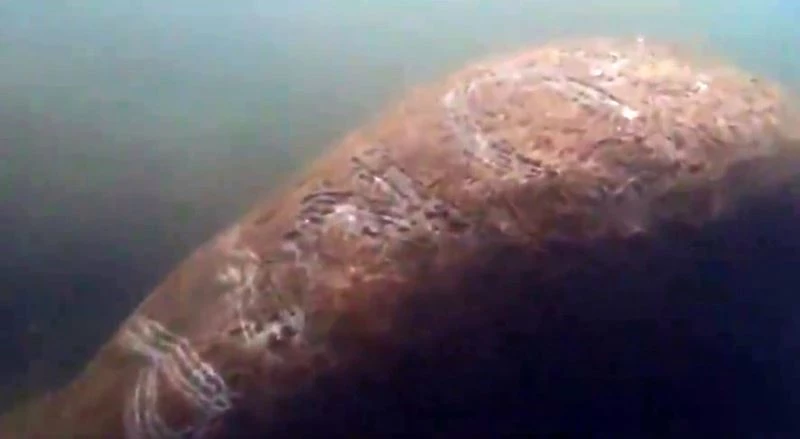 Nehirde tekne turuna çıkan bir kişinin durumu fark ederek kaydettiği görüntülerde, deniz ineğinin sırtında büyük harflerle yazılan "Trump" kelimesi rahatlıkla okunabiliyor.